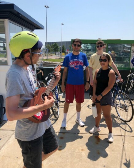 A group of cyclists pose for a photo at the Buffalo waterfront
